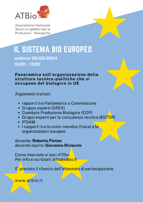 Il nuovo webinar di ATBio ha lo scopo di fornire ai soci una panoramica sull’organizzazione delle strutture tecnico-politiche che si occupano del biologico in UE.